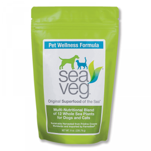 Sea Veg©’s proprietary blend of sea plants also includes fiber, which contains anti-tumor, anti-inflammatory and antirheumatic properties that help build up a healthy digestive system in pets. One of the specific benefits of seaweed as opposed to other plants to dogs and cats is that it does not contain cellulose, which is hard for animals to digest. It’s also a great source of prebiotics, which feed the good bacteria in the gut while simultaneously inhibiting growth of certain pathogenic bacteria.